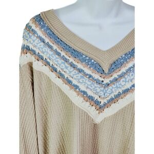 Free People Copenhagen Thermal Top Size Medium Double V- Neck OB995549