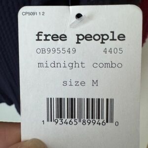 Free People Copenhagen thermal crochet knit top balloon sleeve Midnight Combo navy red
