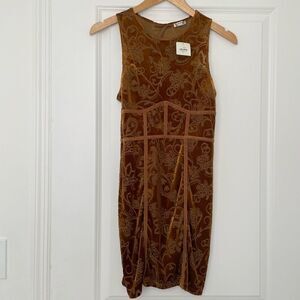 Free People Copper Burnout Babe Bodycon Size Small Velvet Dress