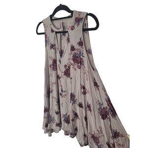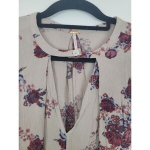 Free People Coquette Blouse XS Womens Tan Floral Sleeveless Keyhole Front