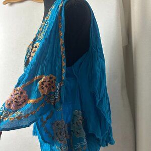 Free People Cora blue Embroidered flutter split sleeve beach summer Dress sz Sm