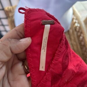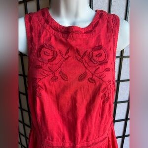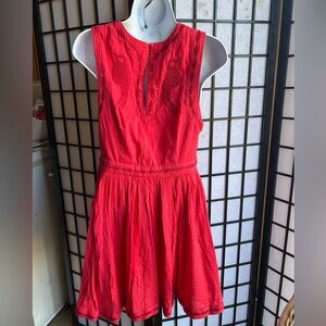 Free People Birds of a Feather coral embroidered mini skater dress. Gently worn, . No other flaws, embroidered flowers and illusion belt around the waist. Loose and flowy, sleeveless. Zipper on the side. Offers are always welcome! :) This elegant red sleeveless dress is perfect for any occasion. Its vibrant color and stylish design make it a must-have in your wardrobe.