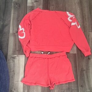Stylish coral lounge set with textured design. Ideal for relaxed days.