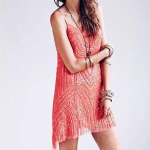 Free People Coral Reef Flapper Sparkling Sequin Dress
