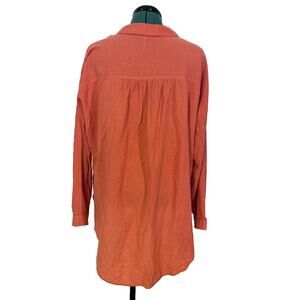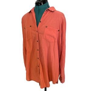 Free People Coral Textured Oversized Button Up Long Sleeve Shirt Size Small