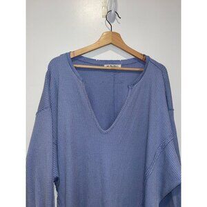 Free People Coraline Blue Waffle Knit V-Neck Oversized Pullover Sweater Medium