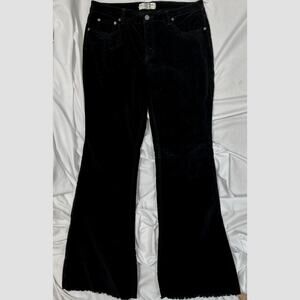 Free People Corduroy Raw Hem Flare Jeans Black Noir 31