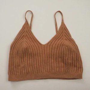 Free People Corset Detail Swit Spaghetti Strap Ribbed Knit Cami Crop Top sz M