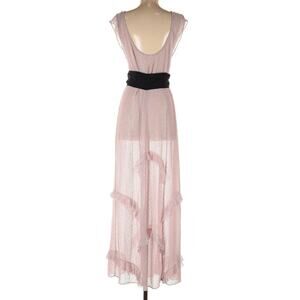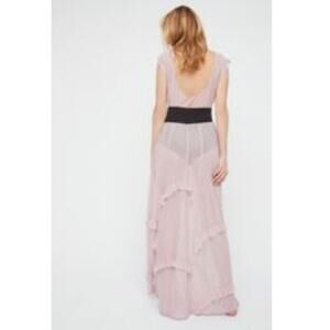 Free People Corset Sheer Dusty Rose Pink Ruffle Mesh Maxi Dress