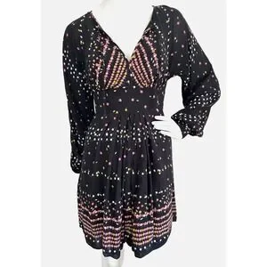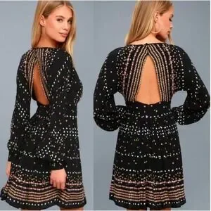 Free People Coryn Dress Size 2 XS Black Cherry Print Open Back Fit Flare V-Neck