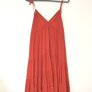 Free People Cosmico Maxi Endless Summer V Neck Sleeveless Dress Gauze Pink Red muted coral