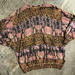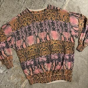 Free People Cosmos Snake Print Crewneck Sweater Top in pink combo