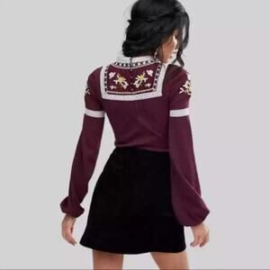 Free People Cosy On Up Ribbed Embroidered Blouse Top Size M