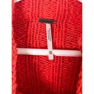 Free People Cotton Blend Cable Knit Mock Neck Crop Sweater Red Women's Size XS