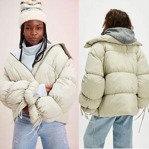 Free People Cotton Candy Puffer Coat S Green Boho Oversized Relaxed Zip Quilted