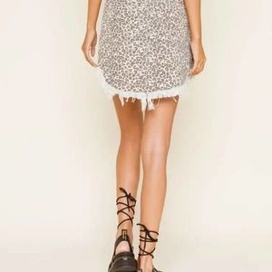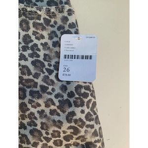 Free People Cotton Cheetah/Leopard Printed Bailey Denim Mini Skirt Size 26 New