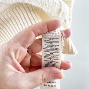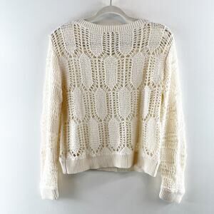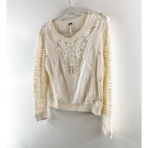 Free People Cotton Crochet Long Sleeve Crewneck Sweater Ivory Large