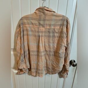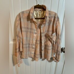 Free People Cotton Cropped Plaid Coral Light Pink Peach Button Down