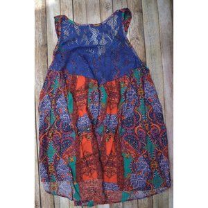 Free People Count Me In Trapeze Top Mini Dress Blue Red Combo