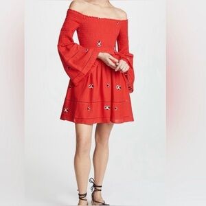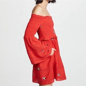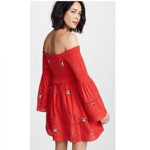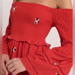 Free People Counting Daisies Red Embroidered Ruffle Dress Size XS fits