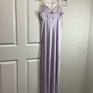 Free People Countryside Lilac Purple Satin Lace Trim Slip Maxi Dress Sz M