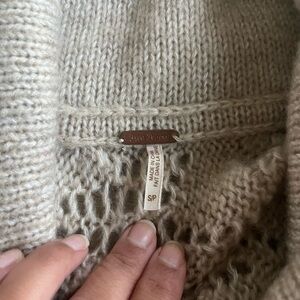 Free People Cowl Neck Wool Crochet Knit Cardigan SZ S