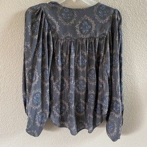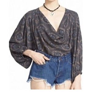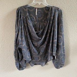 Free People Womens Gray Draped Cowling Around Peasant Blouse Sz XS NWT Midnight.