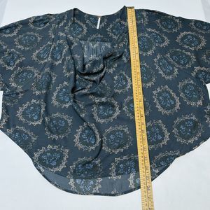 Free People Cowling Around Top SMALL Ballon Sleeve Floral Oversized Drape Boho