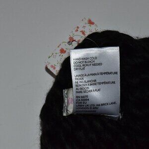 Free People Cozy Chunky Knit Colorblock Pom Pom Beani Winter Hat Black Blue