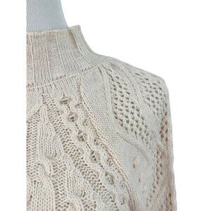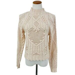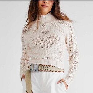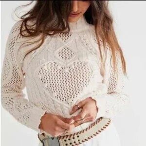 Free People Cozy Cream Cable-Knit Mock Neck Heart Sweater