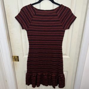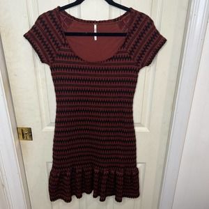Free People Cozy Day Striped Knit Flounce Dress Size Small Brown/Black