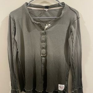 Free People Cozy Up Henley Long Sleeve Green Ombré Linen Blend Top Women’s Sz XS