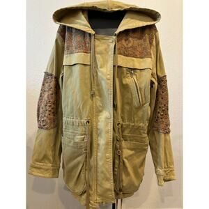 Free People Crafted Cloth Tapestry Jacket Khaki Green Textile Full Zip Coat sz L