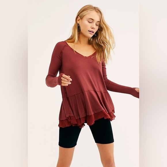 Free People Cranberry Tunic Ribbed Long Sleeve