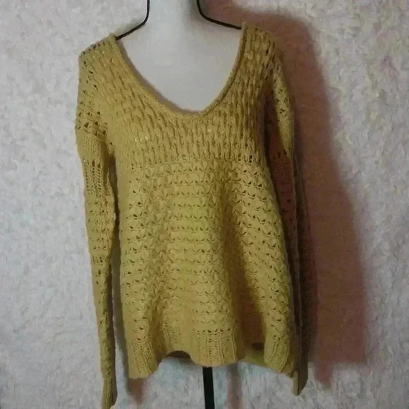 Free People Crashing Waves Chunky Wool Blend Sweater in Yellow Size L Boho Bohemian Oversized Looseknit Lagenlook Cottagecore Beachy Comfy Fishermancore