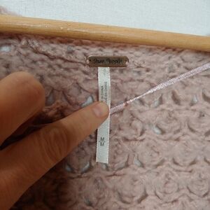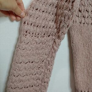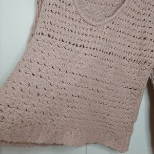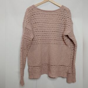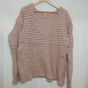 Free People Crashing Waves Pullover Sweater Blush Rose Pink Open Knit Wool M