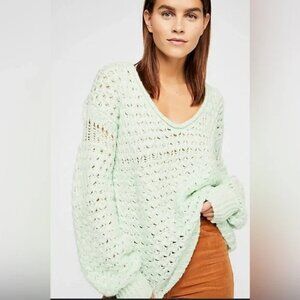 Free People Crashing Waves Pullover Sweater Oversized Wool Blend Mint Knit Sz S