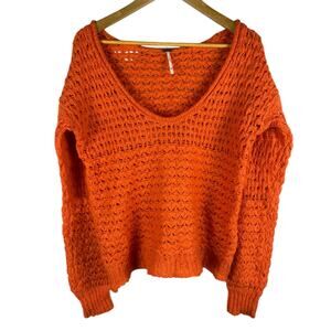 Free People Crashing Waves Pullover Wool Blend Oversized Sweater Orange Size XS