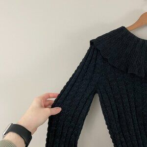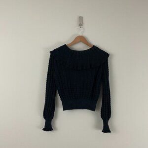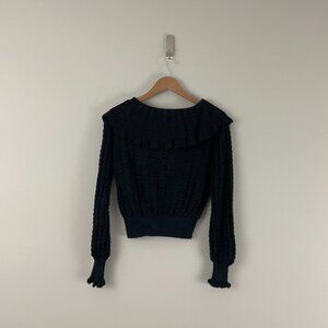 Free People Crazy In Love Ruffle Knit Sweater in Black Size Small