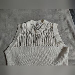 Chic Off White Sleeveless Crochet Knitted Dress/ Perfect For Casual Outings/Beachy Dress/Has Large Side Slits/Oversized Tunic/Open Knit Details/Crochet Accents/One Size (Women)/For All Seasons/Boho
