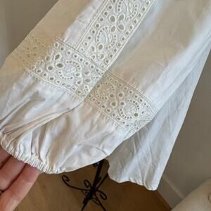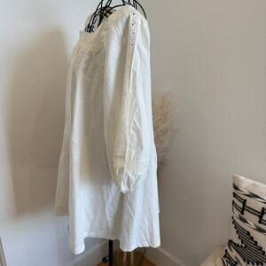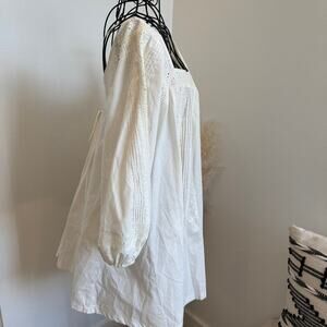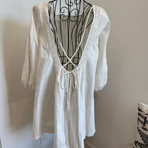 Free People Cream Cotton Open Back Balloon Sleeve Tunic Mini Dress Small- Boho