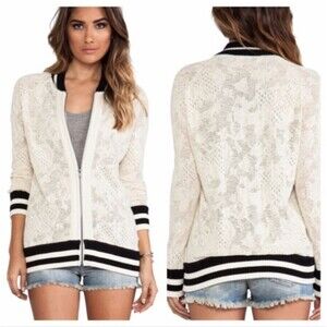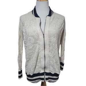 Free People Cream Crochet Lace Zip Up Bomber Jacket Women's XS