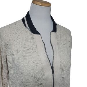 Free People Cream Crochet Lace Zip Up Bomber Jacket Womens XS