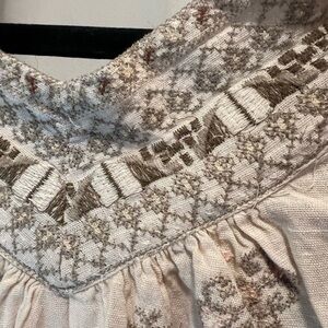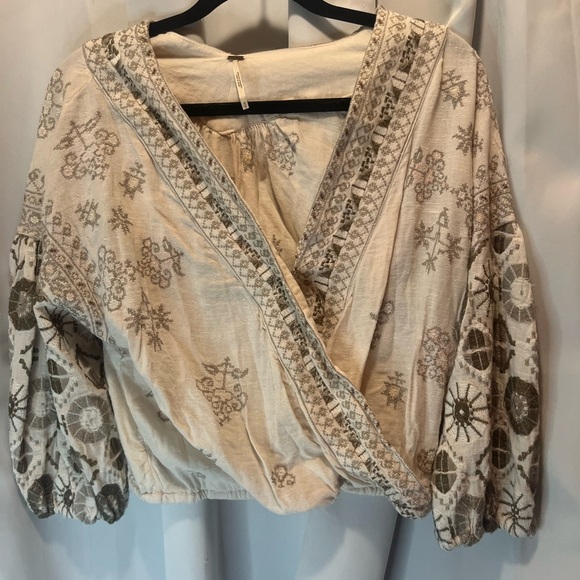 Free People Cream Embroidered 3/4 Sleeve Blouse