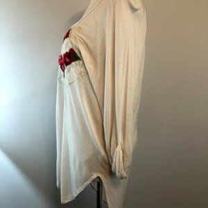 Free People Cream Embroidered Knit Top
