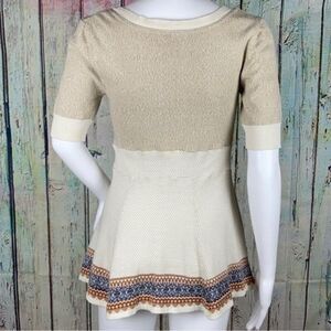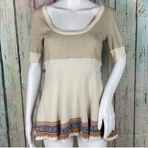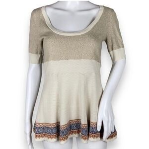 Free People Cream Fair Isle Short Sleeve Knit Top Size XS