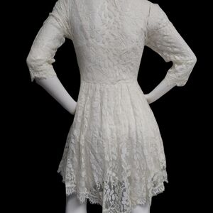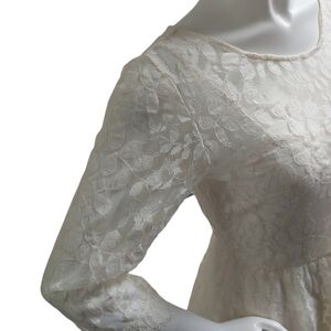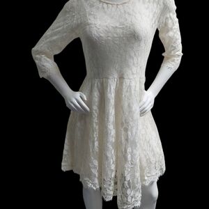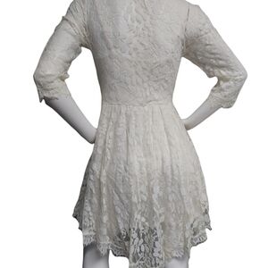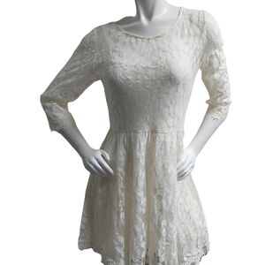Free People Cream Floral Pattern Lace Dress Size 8 Skater Girl Lined Half Sleeve
