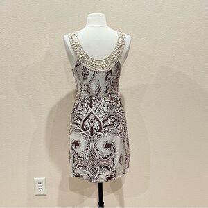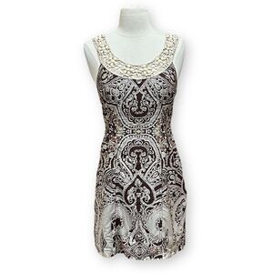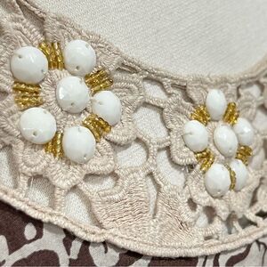 Gorgeous crocheted neckline embellished with cream and clear gold-tone beadwork.