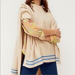 Free People Cream Harbour Stripe Cable knit Poncho Sweater Sz O/S NWT