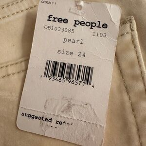 Stylish cream jeans by Free People. Features classic five-pocket design. Perfect for casual wear.